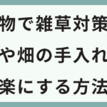 場合によっては、植物による対策だけでなく、通路にウッドチップやバークチップを敷く方法と組み合わせると、さらに管理が楽になります。植物と資材をうまく併用することで、畑の通路も歩きやすく、草取りに追われにくい環境に近づけることができます。